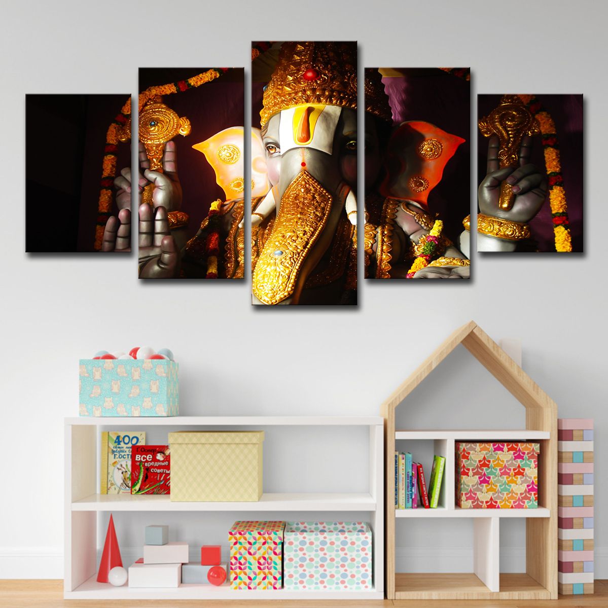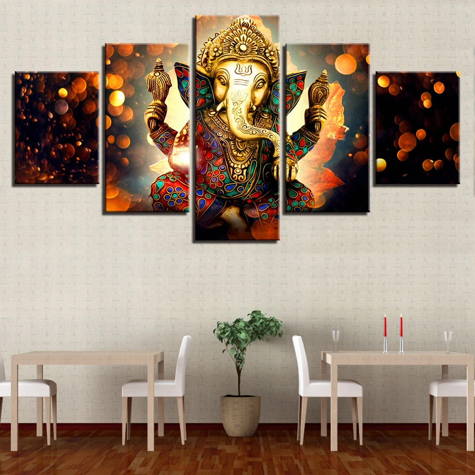 Canvas Painting 5 Pieces India Tibetan Ganesha Wall Art Printed
